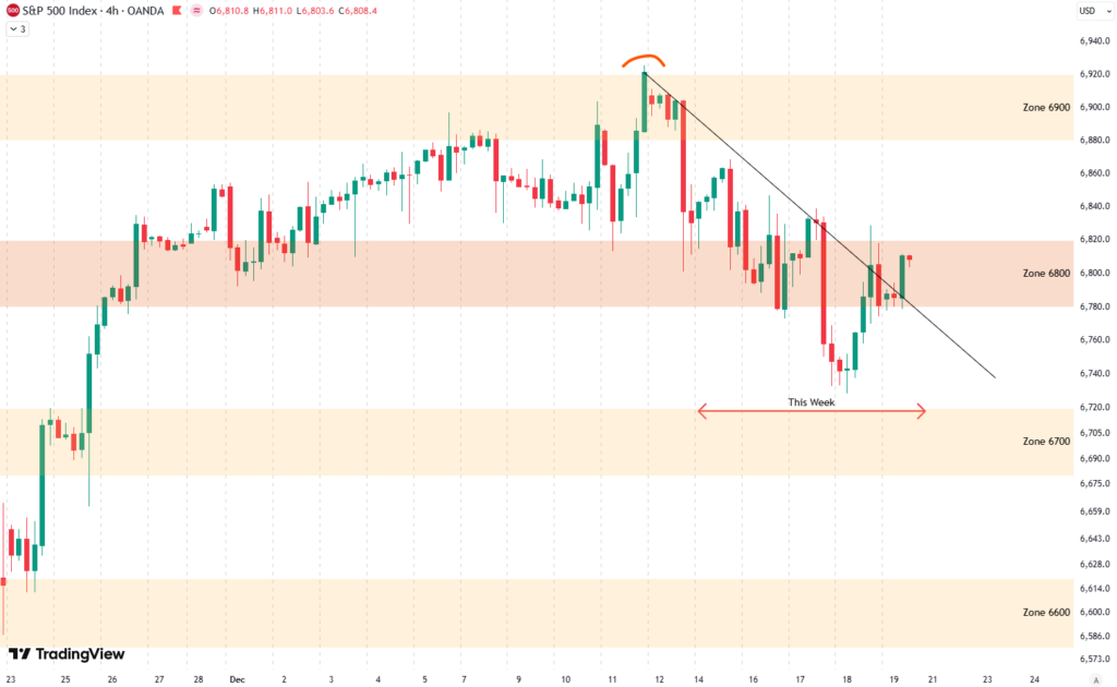 Welcome to this week’s update on the S&P 500. Not much happened overall, and the index finished the week with a slight gain of 0.4%.Looking at the 4-hour chart, we discussed last week that a retest of the 6800-point zone was likely. As you can see, we had several tests of that area throughout the… Read more: Weekly Update S&P 500