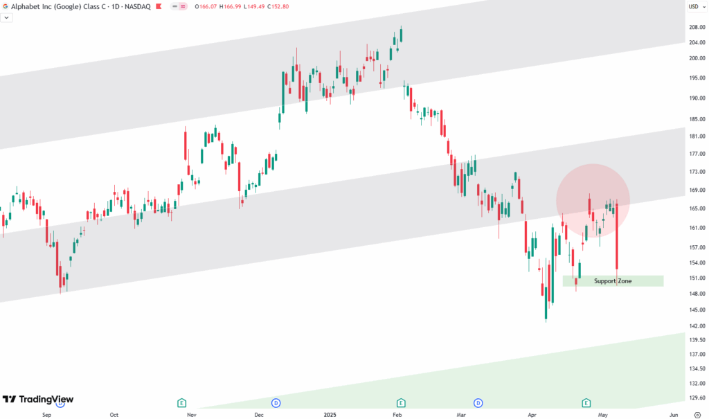 Right now, while the broader market has been rallying, Google’s weakness is standing out. That’s something to watch. It might not just be a Google problem — it could be an early sign that the broader market is losing steam too.